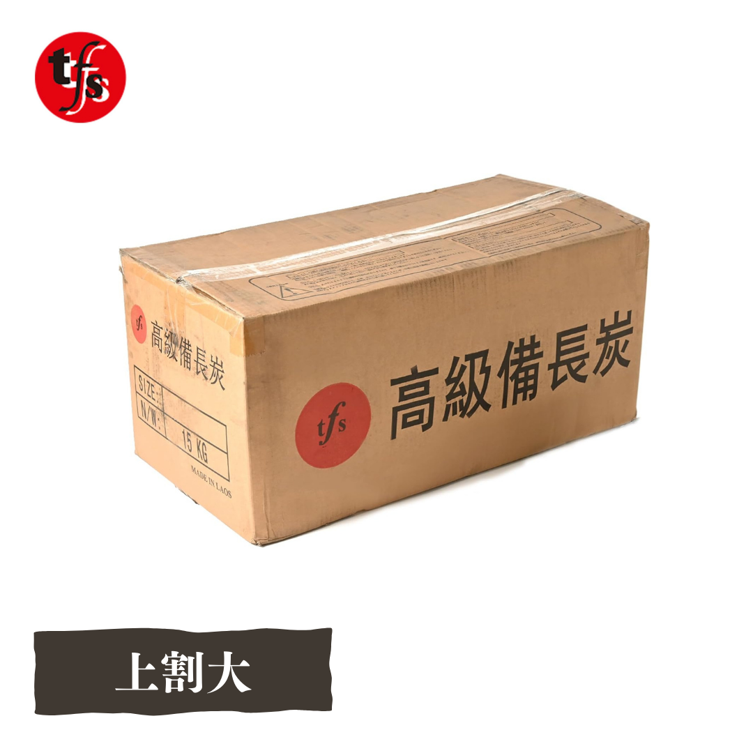 TFS ラオス産 天然備長炭 上割大 15kg 1箱 - 業務用 白炭 キャンプ用 BBQ用 長時間燃焼 強火力 灰少なめ