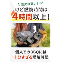 オガ炭は普通のレジャー炭に比べ、2倍近く燃焼時間が長いのが特徴です。(4時間程度燃焼可能)