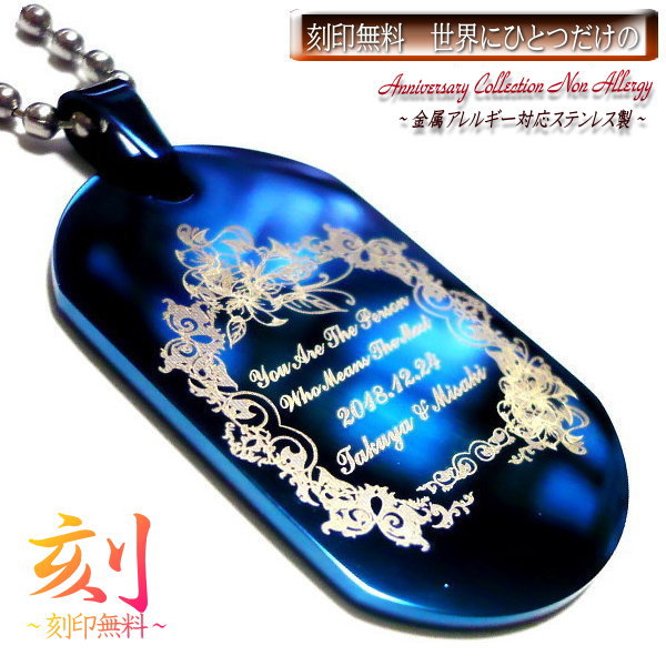 刻印 刻印無料 ネックレス ステンレス 金属アレルギー対応 ドックタグ プレート ステンレスネックレス 名入れ イニシャル 名前 記念日 ネーム ネームプレート