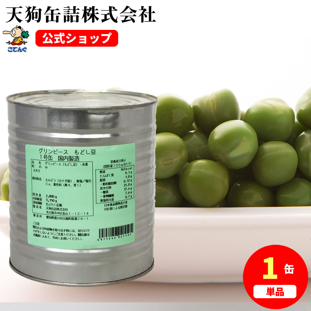 グリンピース水煮 缶詰 もどし豆 カナダ原料国内製造 1号缶 固形2,000g シュウマイピラフの彩りに バラ売り 天狗缶詰 業務用 食品