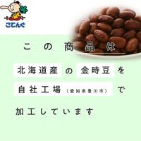 北海道産乾燥金時豆を、愛知県豊川市にある自社工場で袋詰にしました。原料には、金時豆のポピュラーな品種である大正金時を使用。厳しい原料チェックを行った後、一晩水に漬け、乾燥状態から戻した豆を一度ボイルします。異物の混入を防ぐため、選別・金属探知などの工程を経て袋詰へと加工します。