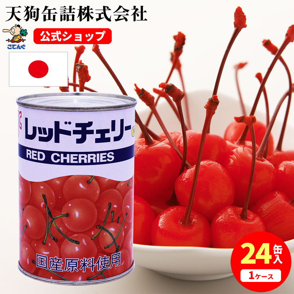【24缶セット】 送料無料※一部除 【公式】天狗缶詰 レッドチェリー(さくらんぼ)枝付 国産 4号缶 個数約47-68個 24缶