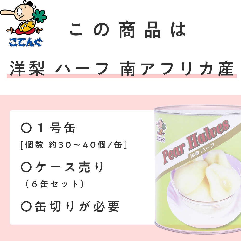 洋梨 缶詰 6缶セット 南アフリカ産 ハーフ 1号缶 個数約31-45個x6缶 天狗缶詰 業務用 食品
