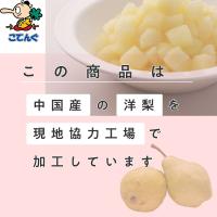 1缶に15mm×15mm×15mmの大きさの洋なしが約900〜1200個入っているので、大量に使う業務用途の方にオススメです。ライトシロップ使用なので洋なし本来の風味が生きていて、甘味のなかにバートレット種特有のほのかな酸味が感じられます。梨特有のシャリシャリした食感、上品な甘味とフルーティな香りは生の洋なしに負けない美味しさです。小麦粉との相性抜群なので、タルトやデニッシュ、パウンドケーキなどに。フライパンで手軽にパンケーキに。ヨーグルトとあわせて簡単フルーツヨーグルトに。他のフルーツ缶、ナタデココ缶と合わせてサイダーを注いでフルーツポンチに。様々なデザートにご活用いただけます。