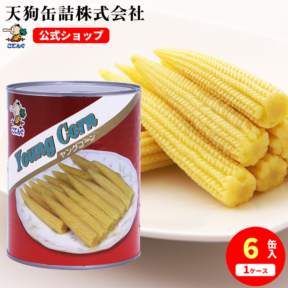 【6缶セット】 【公式】天狗缶詰 ヤングコーン水煮 タイ産 ホール 1号缶 個数150本以上 6缶