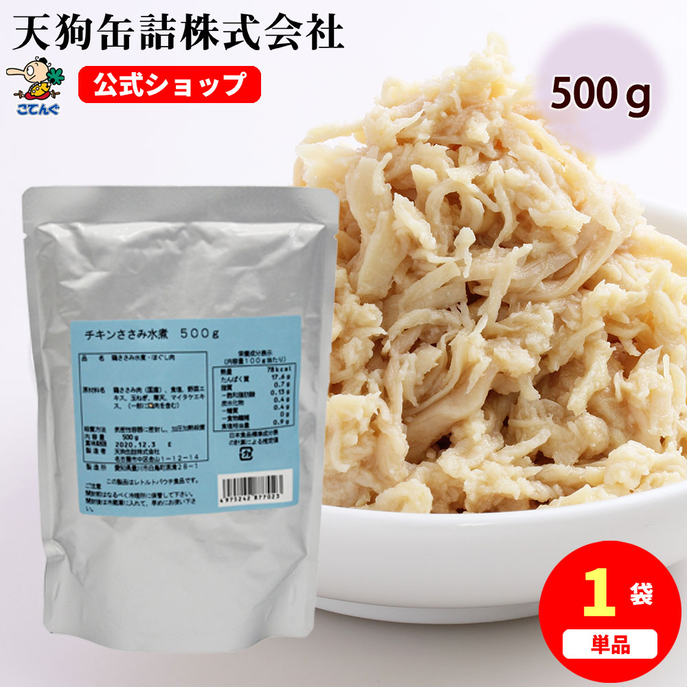 チキンささみほぐし肉水煮 500g サラダチキン ほぐし パウチ 国産 ささみフレーク バラ売り 天狗缶詰 業務用 食品