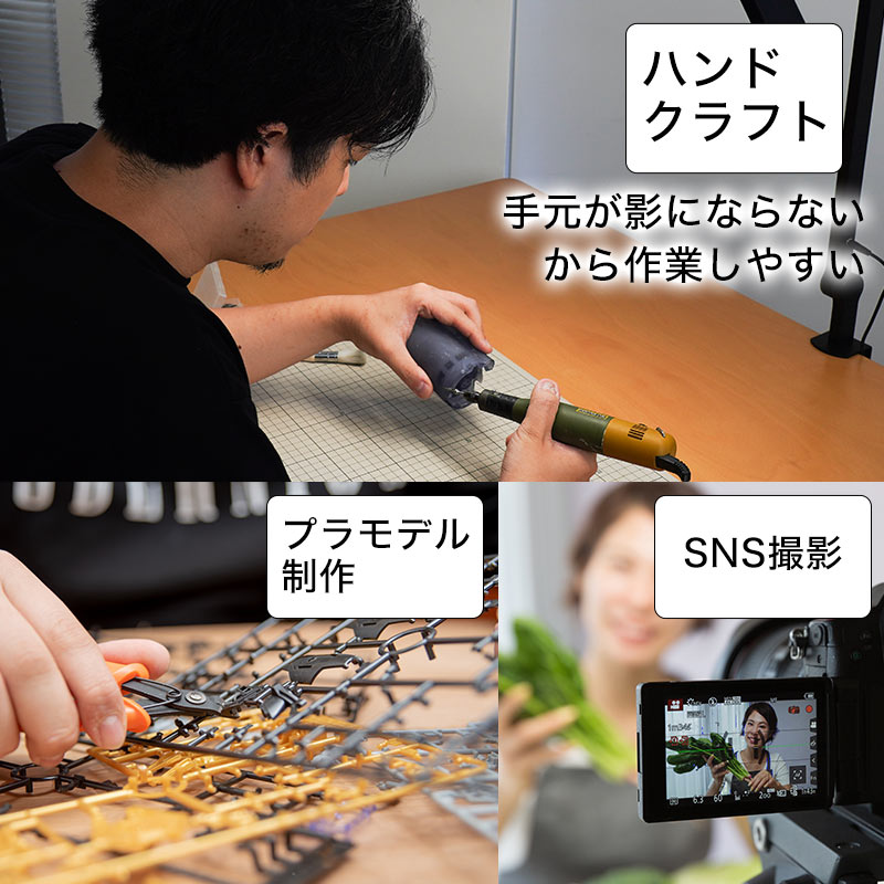 パソコン作業、読書以外にも、ハンドクラフトやプラモ制作など影をなくして作業したい場合に最適です。