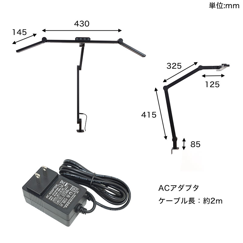 | ライト部:幅720〜430×奥行85×高さ27(mm) アーム:幅30×奥行25×高さ880(mm) クランプ:幅50×奥行52×高さ80(mm) |