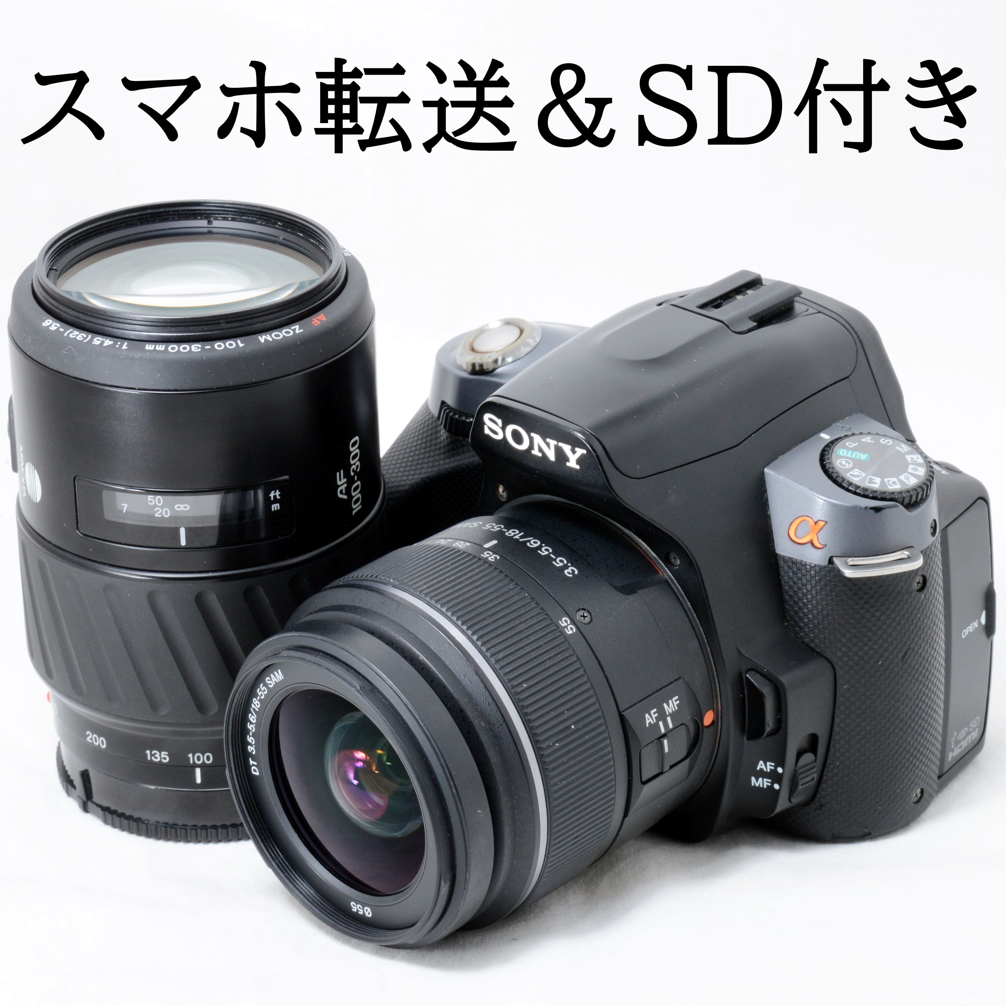 ソニー デジタル一眼レフカメラ SONY α330 18-55mm 100-300mm ダブルズームキット ブラック スマホ転送カードリーダー&SDカード付き 初心者 おすすめ 中古