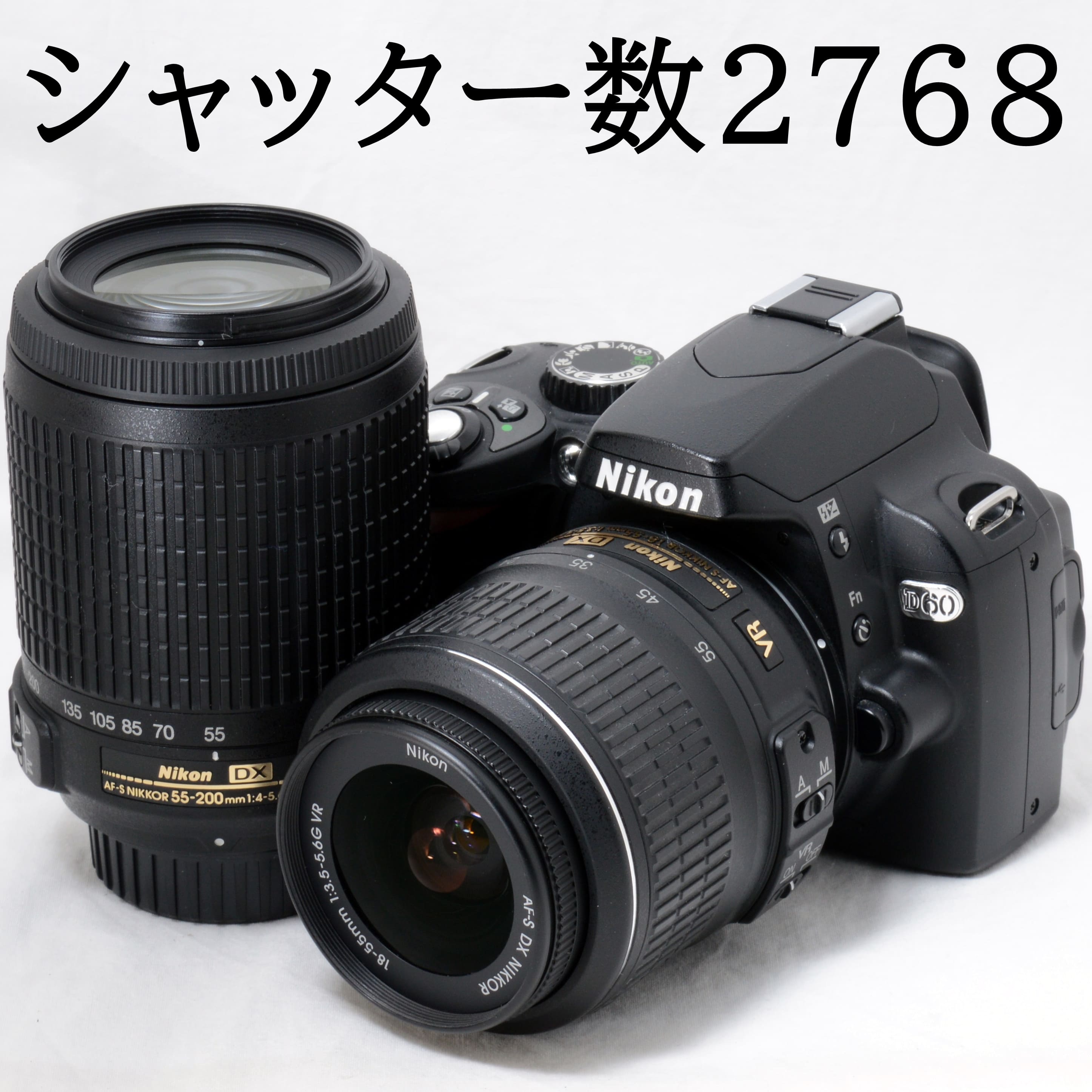 ★美品★ニコン デジタル一眼レフカメラ Nikon D60 AF-S 18-55mm 55-200mm VR 手振れ補正付き ダブルズームキット SDカード付き 初心者 おすすめ 中古