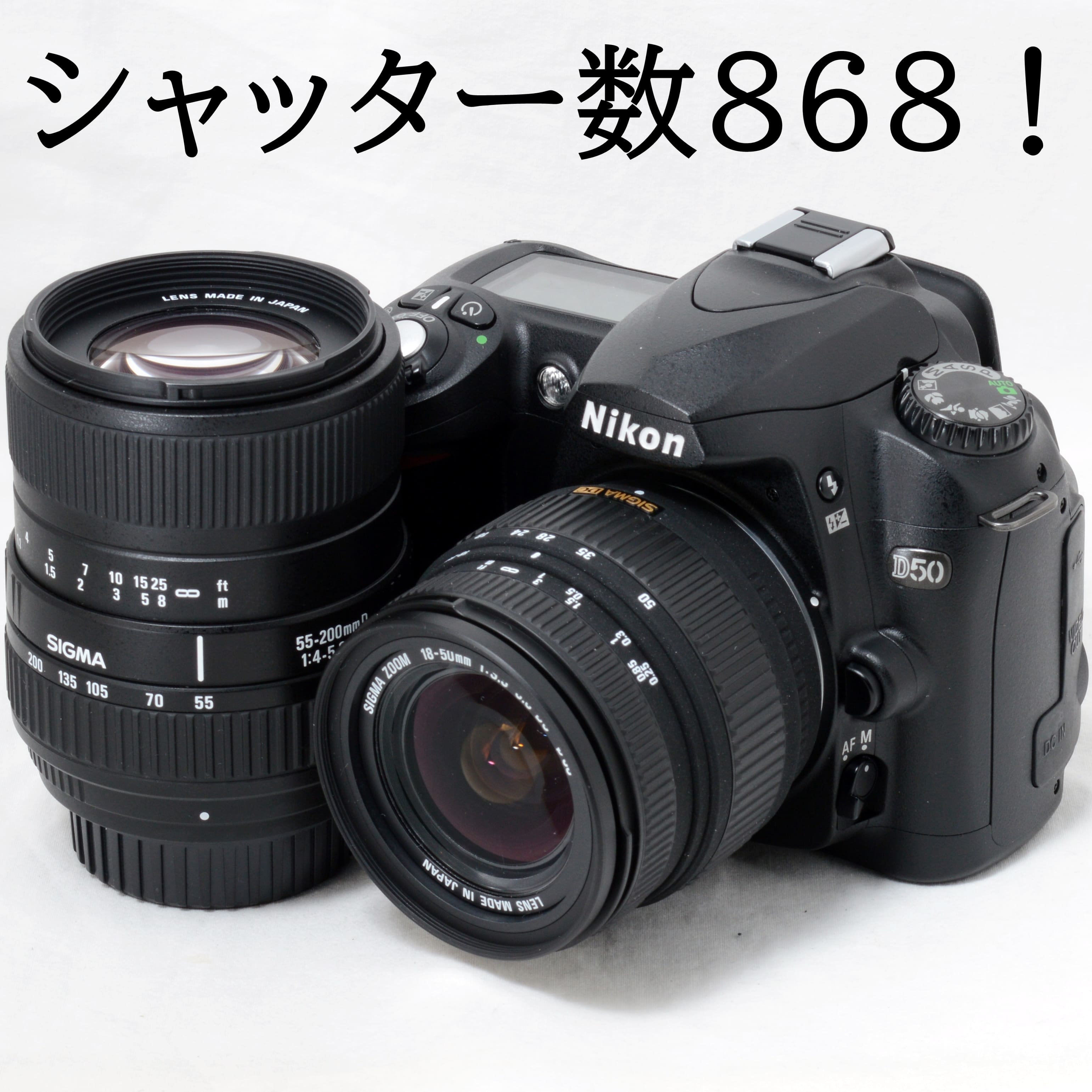ニコン デジタル一眼レフカメラ Nikon D50 AF 18-50mm 55-200mm ダブルズームキット ブラック SDカード付き 初心者 おすすめ 中古