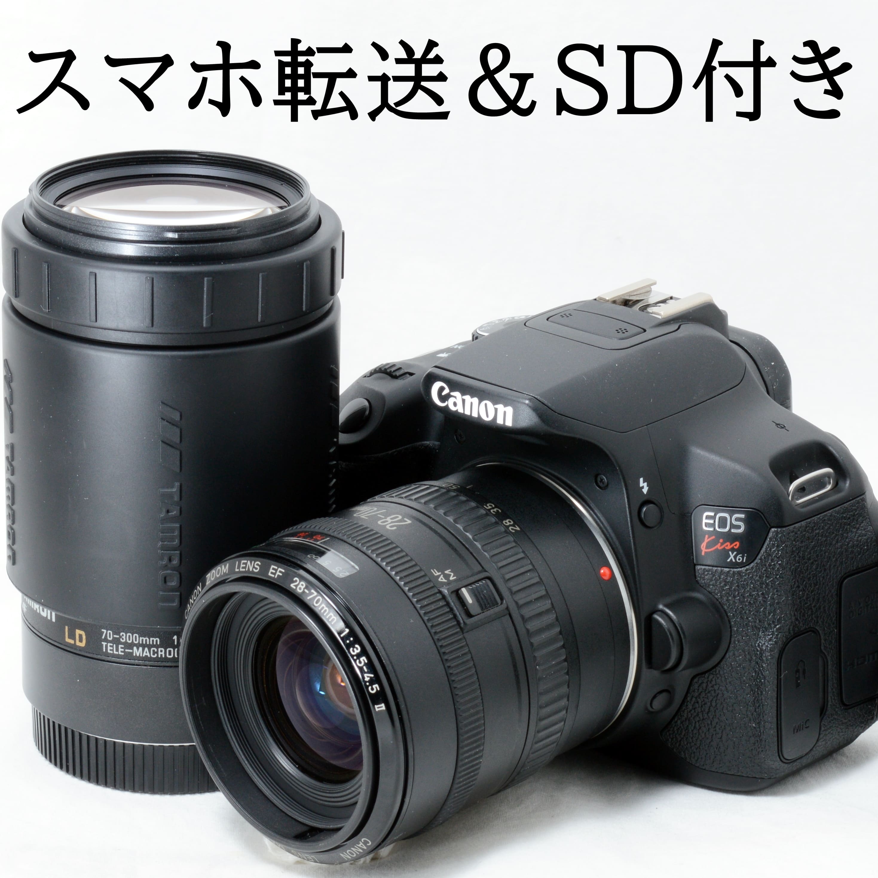 キヤノン デジタル一眼レフカメラ Canon EOS Kiss X6i 28-70mm 70-300mm ダブルズームキット スマホ転送SDカードリーダー&SDカード付き 初心者 おすすめ 中古