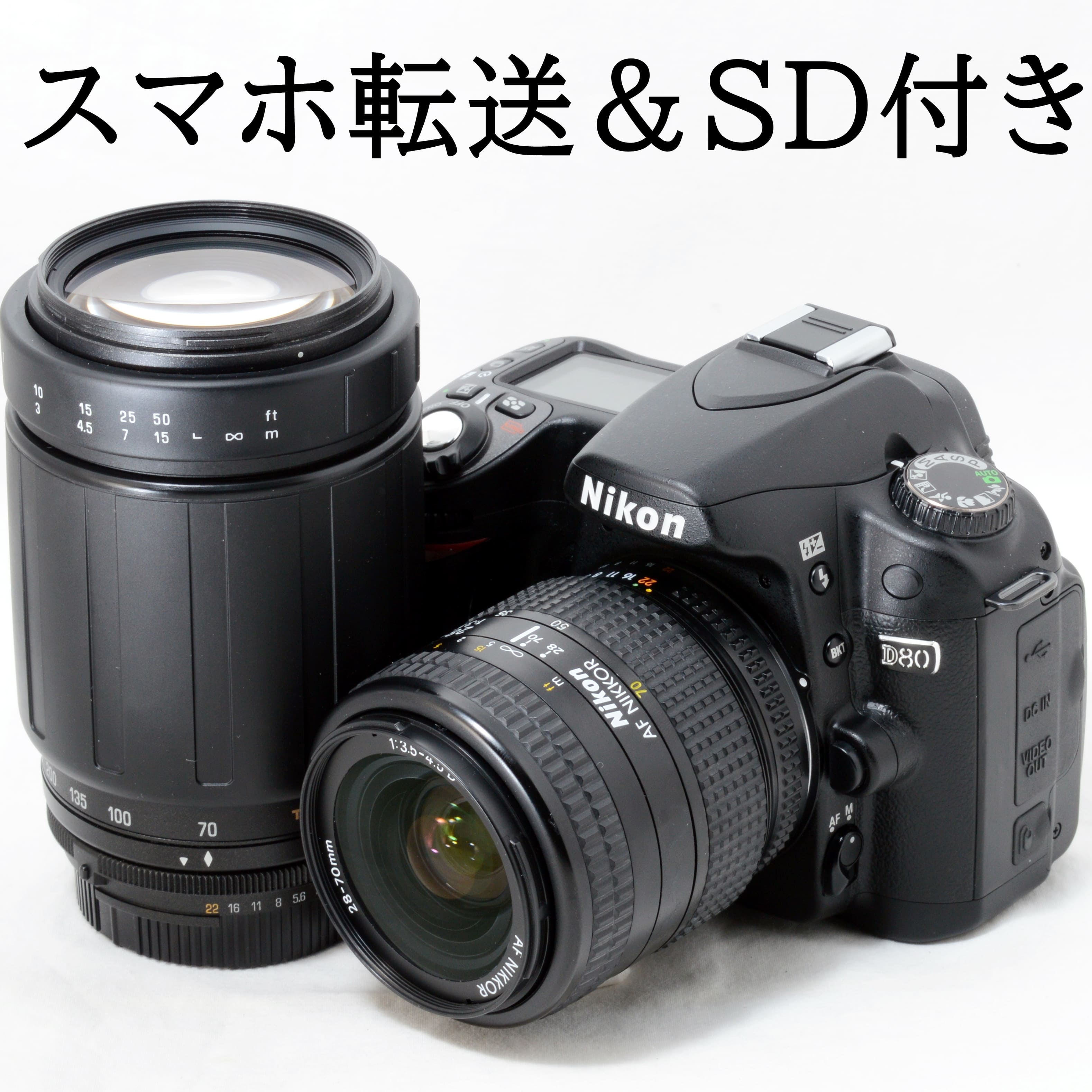 ニコン デジタル一眼レフカメラ Nikon D80 AF 28-70mm 70-300mm ダブルズームキット スマホ転送SDカードリーダー&SDカード付き 初心者 おすすめ 中古