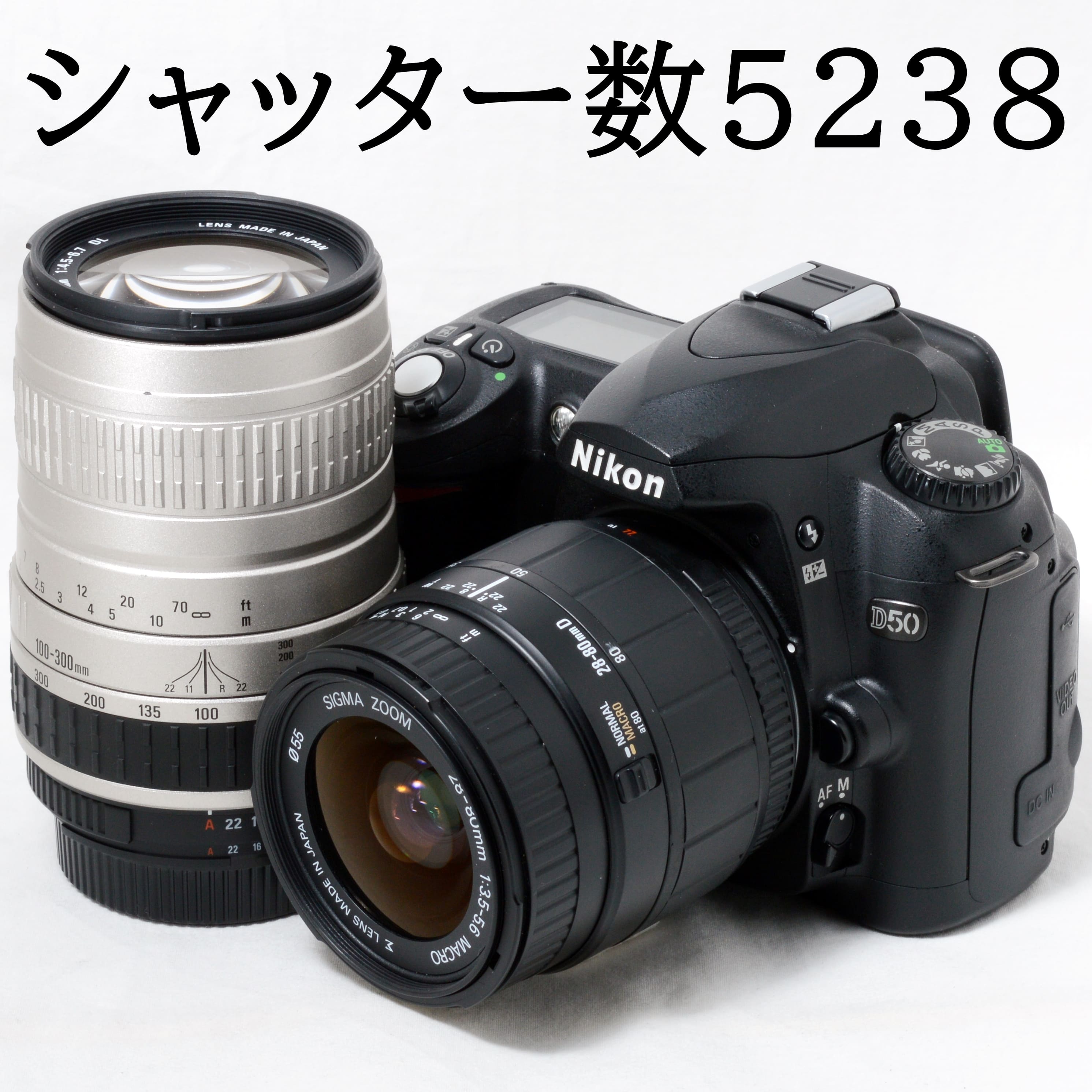 ニコン デジタル一眼レフカメラ Nikon D50 AF 28-80mm 100-300mm ダブルズームキット ブラック SDカード付き 初心者 おすすめ 中古