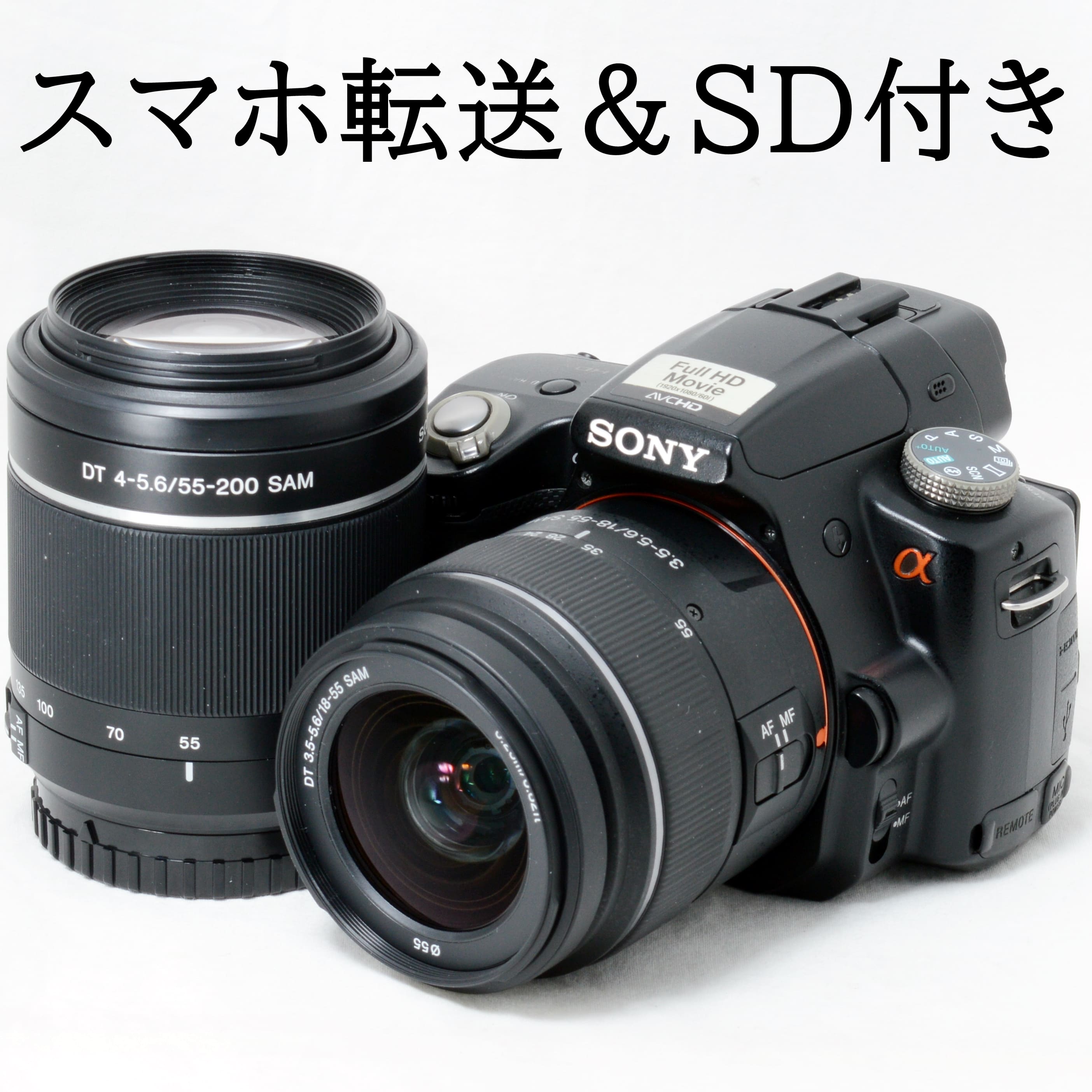 ソニー デジタル一眼レフカメラ SONY α55 DT 18-55mm 55-200mm ダブルズームキット スマホ転送SDカードリーダー&SDカード付き 初心者 おすすめ 中古