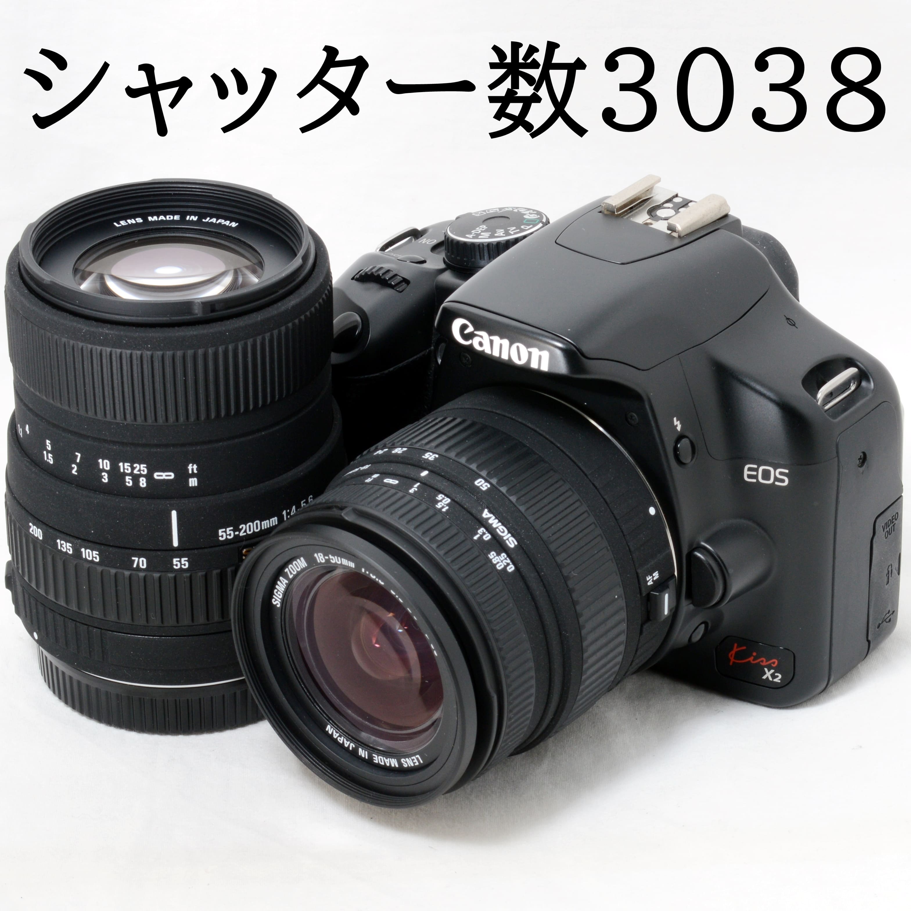 キヤノン デジタル一眼レフカメラ Canon EOS Kiss X2 AF 18-50mm 55-200mm ダブルズームキット SDカード付き 初心者 おすすめ 中古