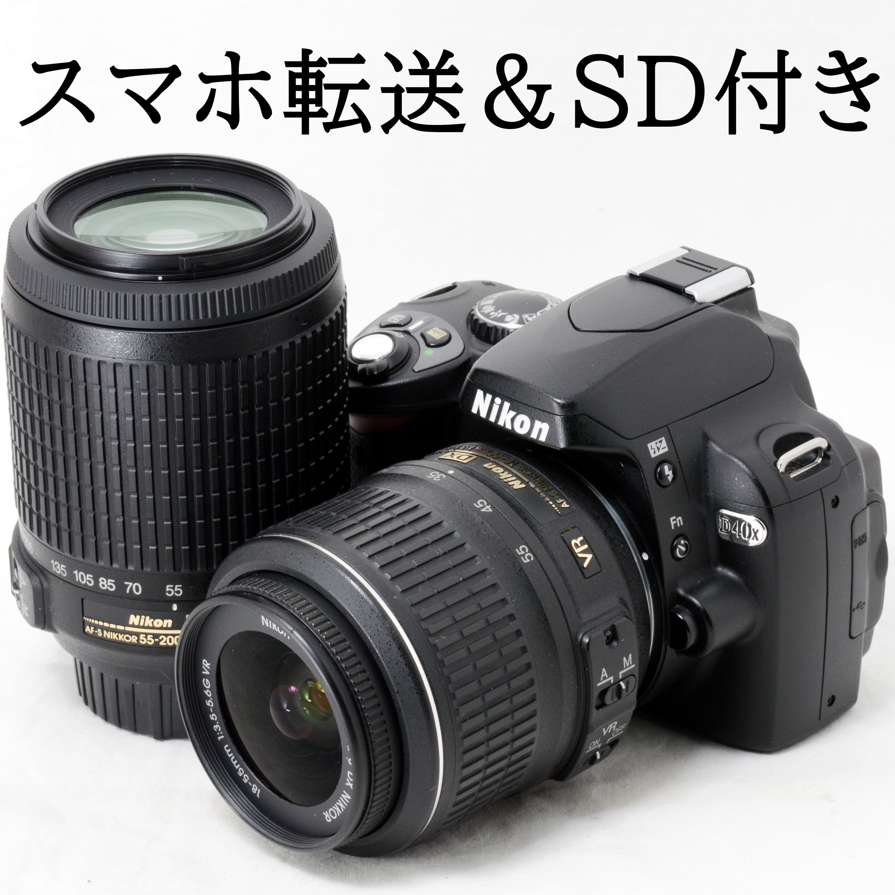 ニコン デジタル一眼レフカメラ Nikon D40x 18-55mm 55-200mm VR 手振れ補正 ダブルズームキット スマホ転送カードリーダー&SDカード付き 初心者 おすすめ 中古