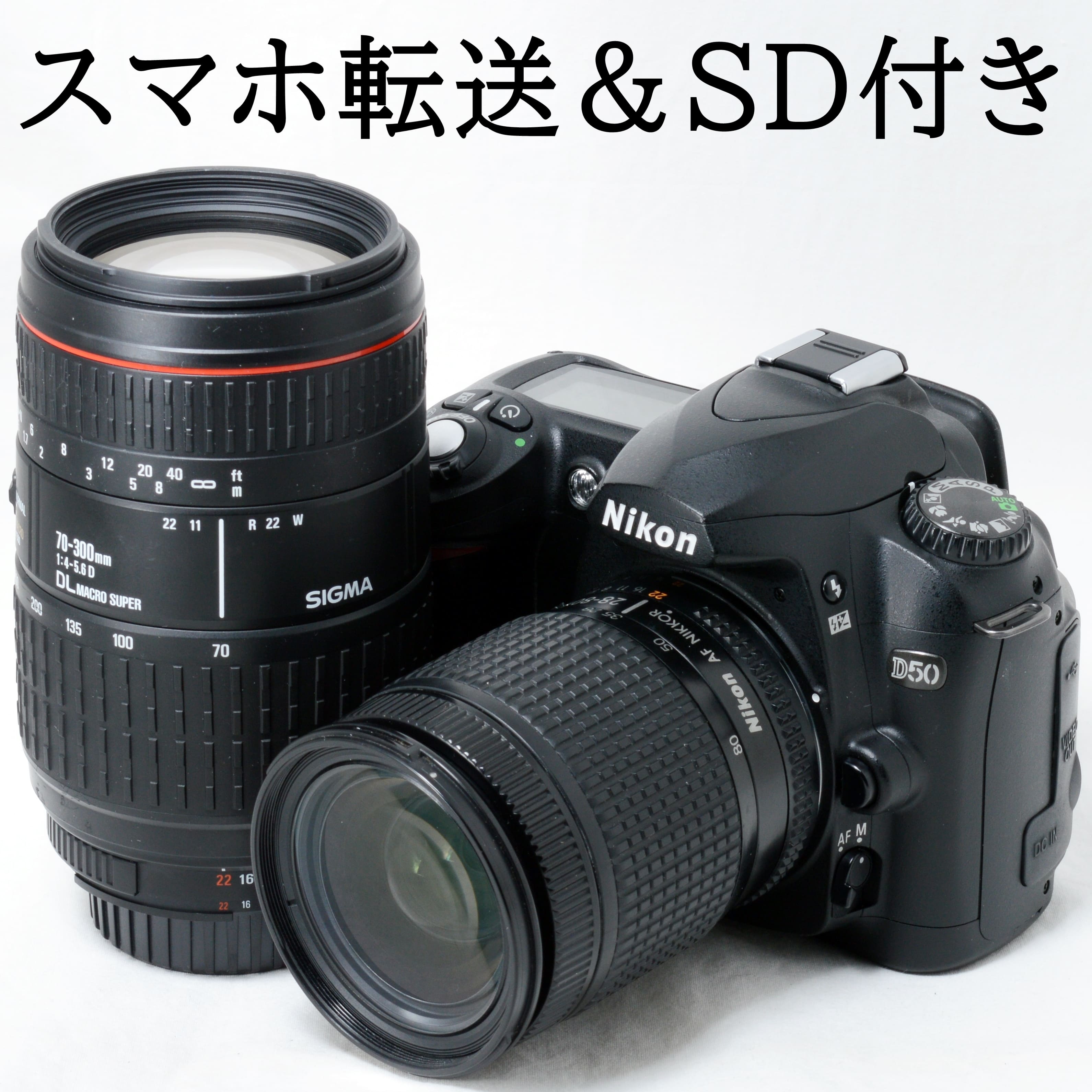 ニコン デジタル一眼レフカメラ Nikon D50 AF 28-80mm 70-300mm ダブルズームキット ブラック スマホ転送SDカードリーダー&SDカード付き 初心者 おすすめ 中古