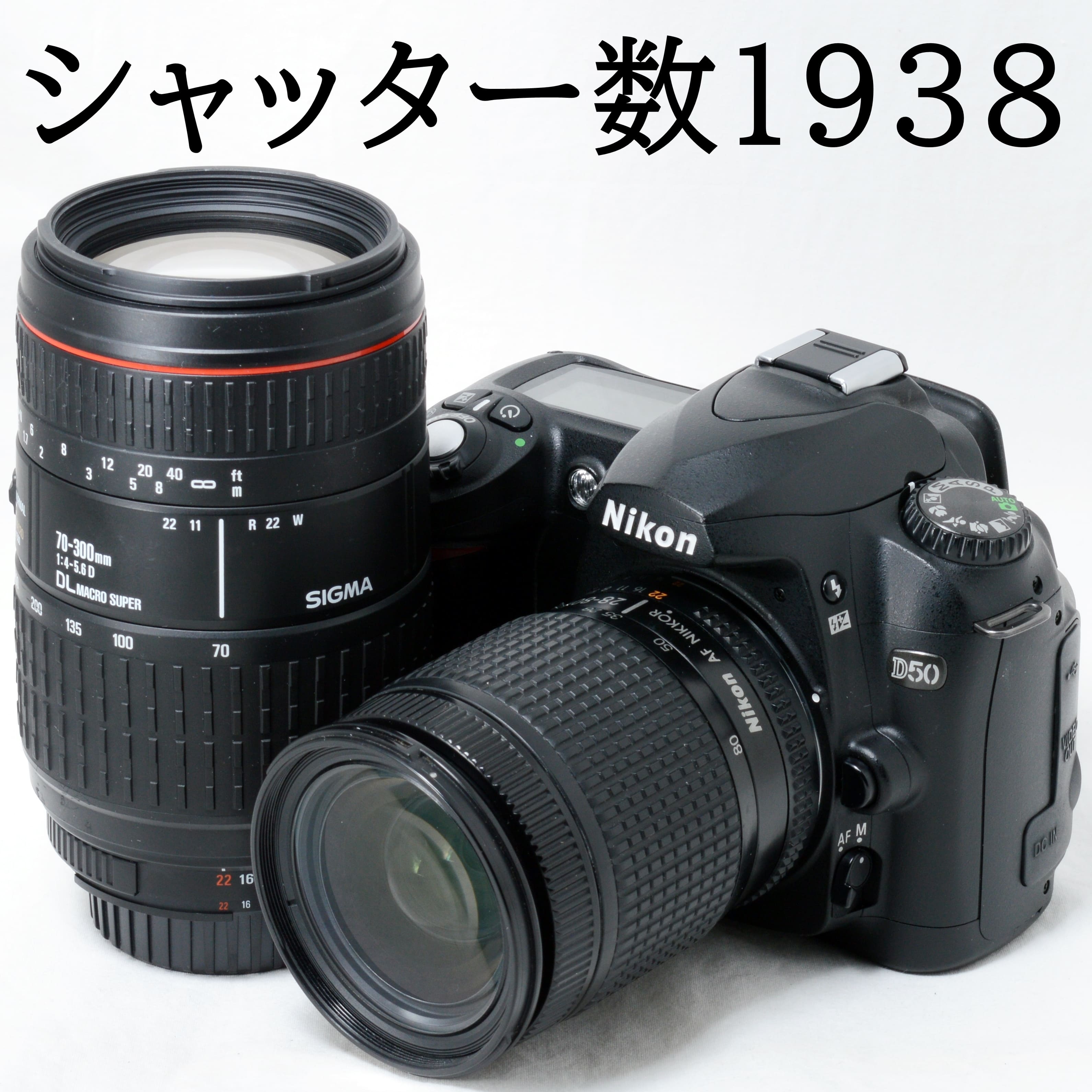 ニコン デジタル一眼レフカメラ Nikon D50 AF 28-80mm 70-300mm ダブルズームキット ブラック SDカード付き 初心者 おすすめ 中古