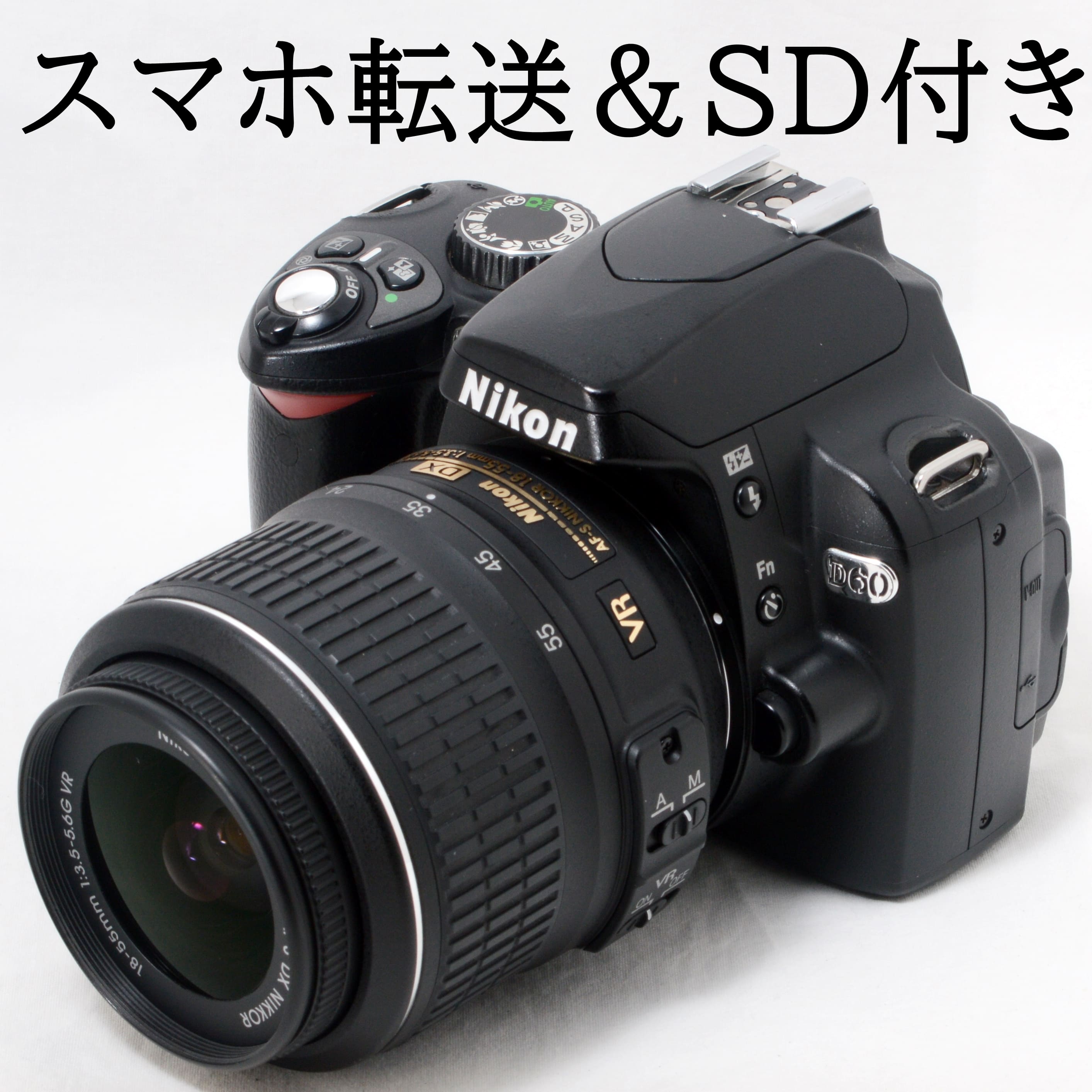 ニコン デジタル一眼レフカメラ Nikon D60 AF-S 18-55mm VR 手振れ補正付き レンズキット スマホ転送SDカードリーダー&SDカード付き 初心者 おすすめ 中古