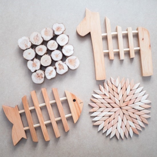 ☆天然木の木目を活かした、北欧テイストのナチュラルな鍋敷きです☆
