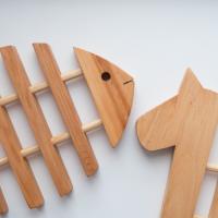 鍋敷き 木製 ポットマット おしゃれ かわいい 北欧 手作り アルダー材 フィッシュ ホース なべ敷き 鍋しき 251