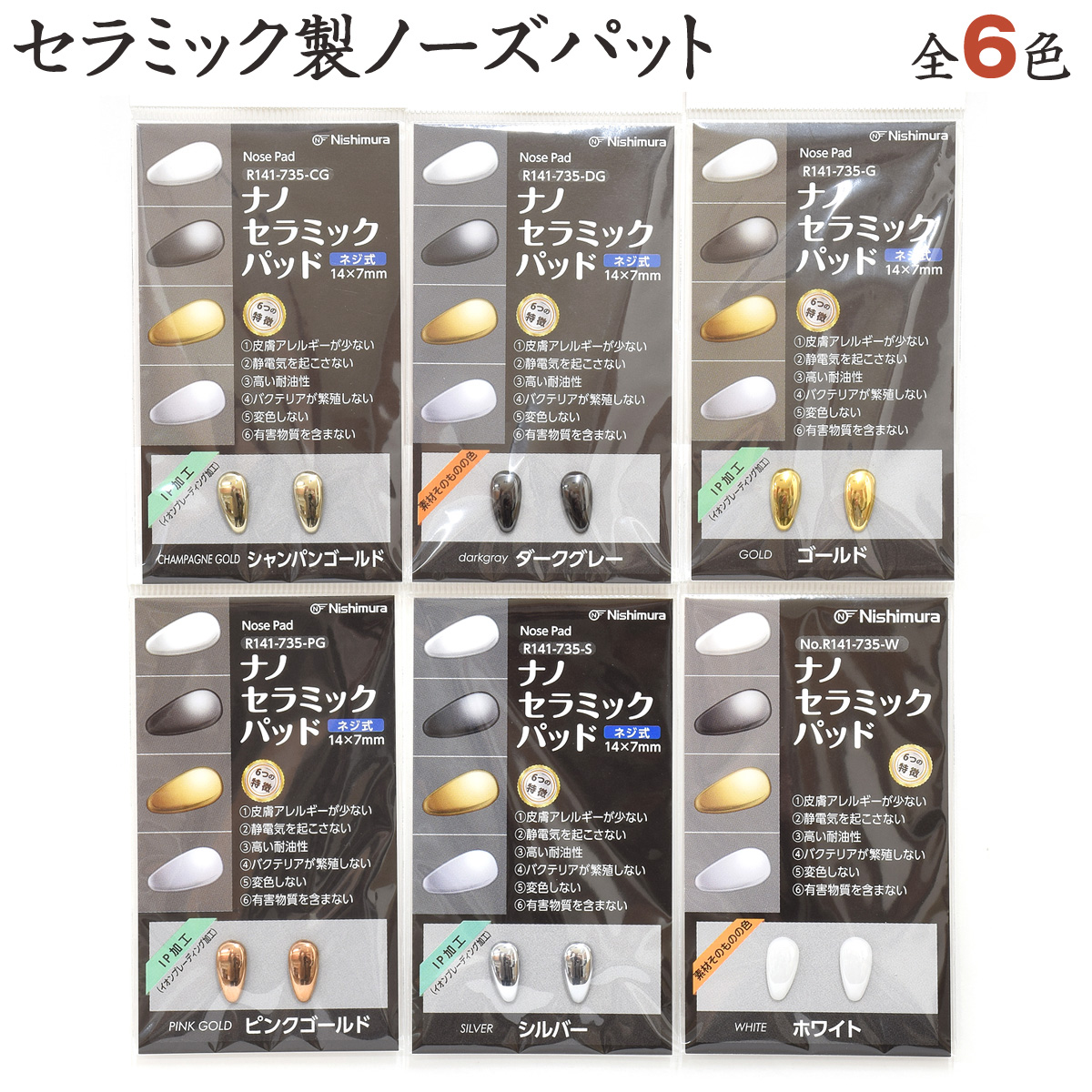 | カラー:全6色 シャンパンゴールド/ゴールド/ピンクゴールド/シルバー(IP加工) ダークグレー/ホワイト(素材そのものの色) | |