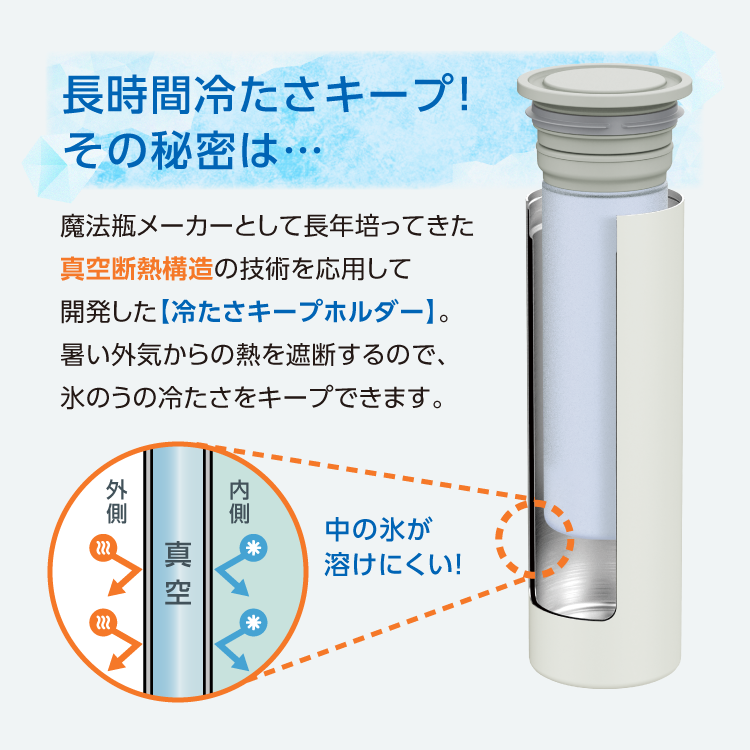 ・ステンレス真空断熱構造で氷のうの冷たさ長持ち。