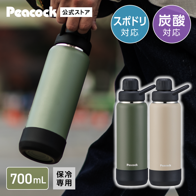 P5倍 水筒 700ml 炭酸 保冷専用 スポーツドリンク対応 おしゃれ メンズ ステンレスボトル 取っ手 ハンドル付き ピーコック公式 ビール プレゼント AJL-R70