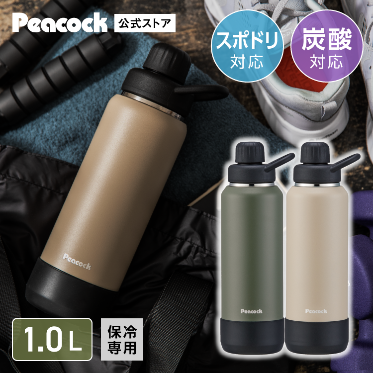 P5倍 水筒 1リットル 炭酸 保冷専用 スポーツドリンク対応 おしゃれ メンズ ステンレスボトル 取っ手付き ピーコック公式 ビール 1L プレゼント AJL-R100