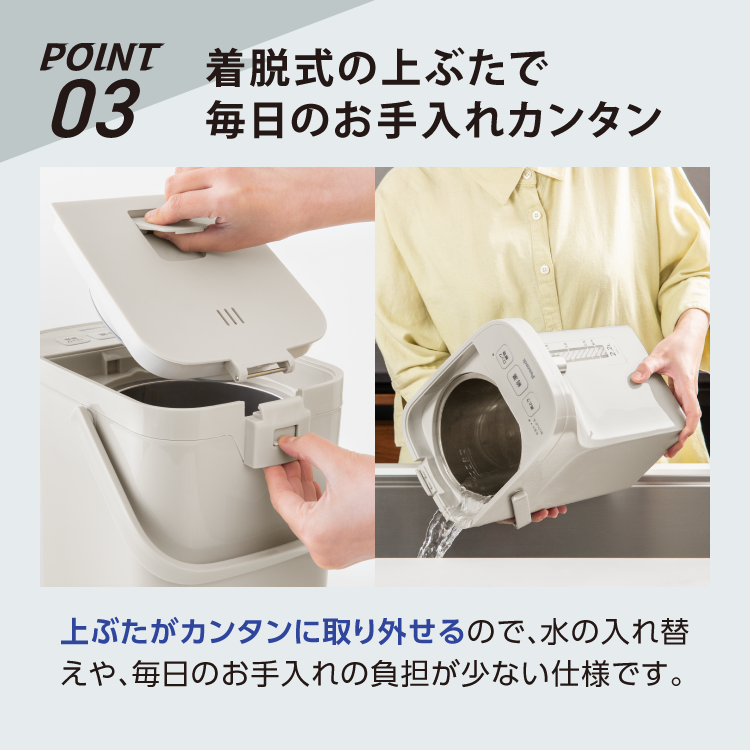 | 材質 | 胴部・上ふた・ハンドル/ポリプロピレン、内容器/ステンレス鋼 |