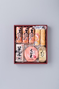 セット内容特選えびちくわ3本、鯛ちくわ1本、かにちくわ1本、焼板蒲鉾1本、えび天(2枚入)2袋、じゃこ天(3枚入)1袋
