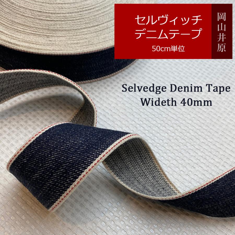 セルヴィッチ デニムテープ リボン 赤耳 手芸 ハンドメイド 40mm幅 バッグ 取っ手 ハンドル 縁取り 生地 布 デニム 井原産 福山デニム 50cm単位