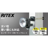 太い柱、厚い塀にも対応した「センサーライト取付用クランプセット SP-5 」です。従来品や付属品のL型ボルトでは届かない太い柱等の取付にも幅(丸)30〜85mmに対応、幅(角)15〜160mmに対応しています。これで太い柱や飛び出た壁、ソーラーパネルの取付等に。RITEXシリーズに適合で対応する機種の詳細は適合機種一覧ページでご確認ください。※クランプでの取付は万一落下しても事故の起こらない場所に取付て下さい。
