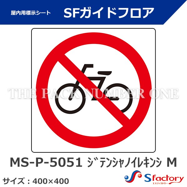 屋内用標示シート SFガイドフロア(MS-P-5051 ジテンシャノリイレキンシ M)サイズ:400mm×400mm(自転車乗り入れ禁止 マークのみ)