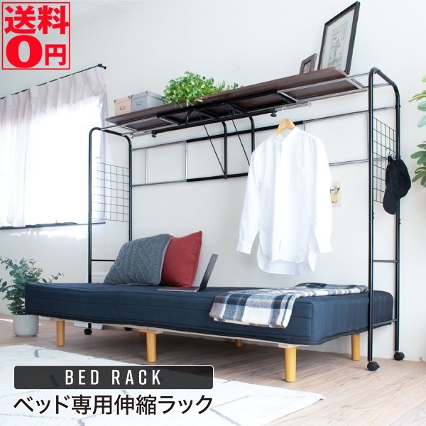 木製 幅200 幅215 幅230 後付 3段階 ベッド回り収納 伸縮ラック サイズ調整 シンプル 寝室 スチール メッシュ 巣ごもりベッド ぐうたらベッド ディスプレイ ステーションベッド ベッドアクセサリー システムベッド 一人暮らし 子供 男前 便利 クローゼットハンガーラック エクステンション ストッパー付き システム シングル セミダブル ダブル