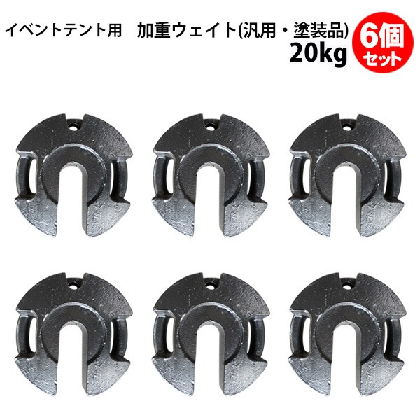 テント ウェイト 20kg 6個セット 汎用 塗装品 風対策 安全対策 重り おもり ウエイト パイプテント用 集会用テント用 運動会テント用 金属製 丸パイプ柱用