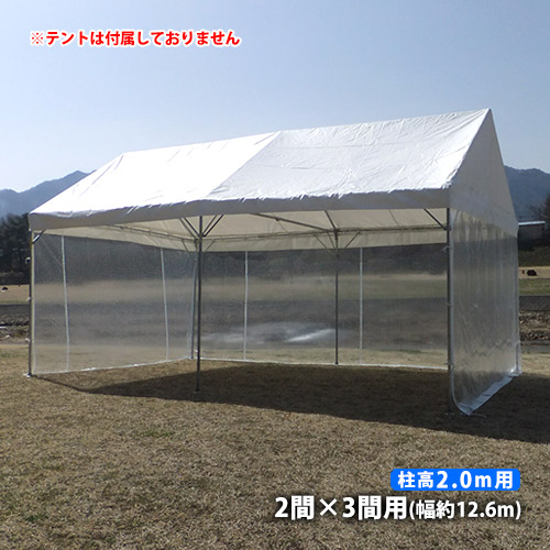 イベントテント用オプション品 横幕3方幕(2間×3間用 糸入透明)(柱高2.0m用) テント 風よけ 雨除け 仕切り 防炎 透明 糸入り 12.6m