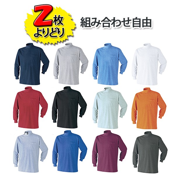 ハイネック 2枚よりどり 作業服 作業着 春夏用 3030-155 長袖ハイネック ポケット付 リーズナブル カットソー 大きいサイズ メンズ