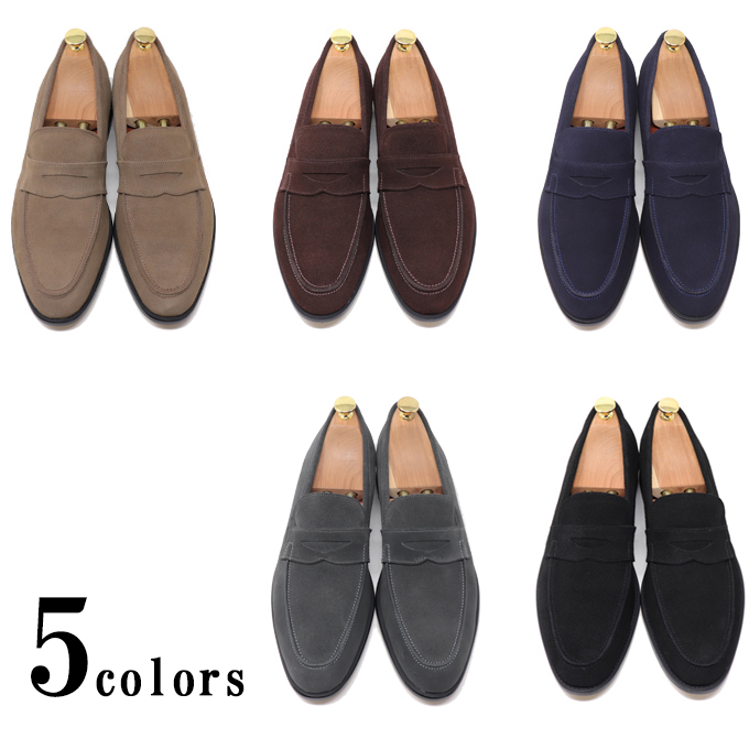 【送料無料 本革 メンズ ローファー】【GLENFORD】【グレンフォード】【オリジナルシューズ】【サイズ交換可能】【小さいサイズ】【大きいサイズ】【ハンドメイド】【手作り靴】【スエード バックスキン】【ブラック ダークブラウン トープブラウン ネイビー グレー ライトグレー】