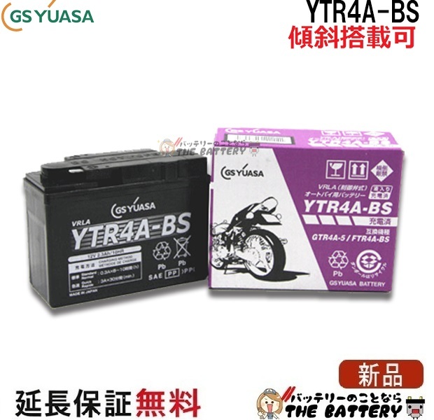 | 互換 | ◆ 旧GS : GTR4A-5 ◆ ユアサ : YTR4A-BS ◆ 古河 : FTR4A-BS ◆ HITACH : KTR4A-5 |