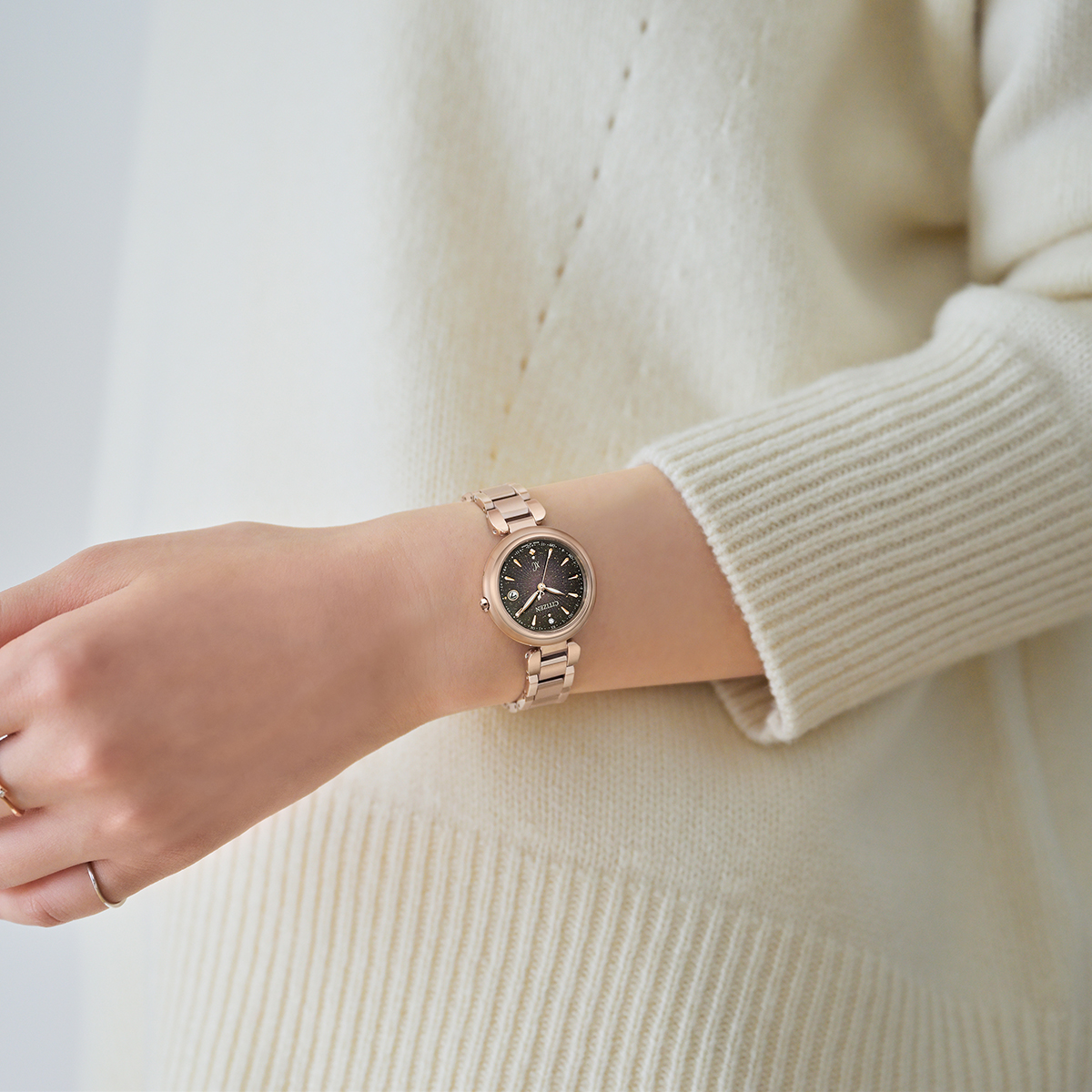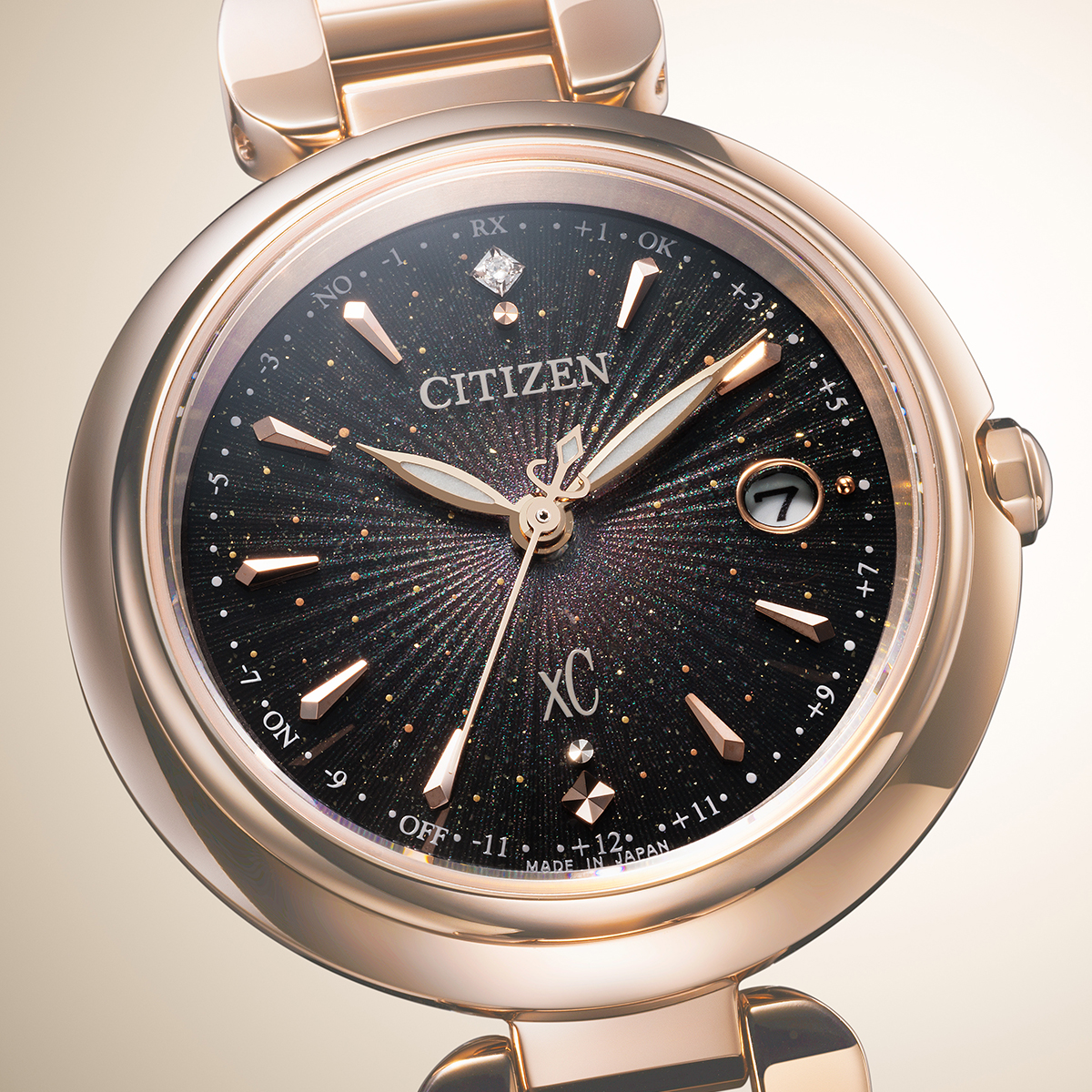 インデックスは、放射状に広がる光をイメージしたカットパーツをレイアウト。12時の位置で輝く1ポイントのラボグロウン・ダイヤモンドが華やかさをきわだたせます。