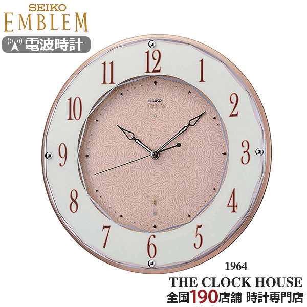 セイコー エムブレム 電波 掛け時計 スマイラックス柄 ピンク HS524A クオーツ 電池式 クロック アラビアインデックス