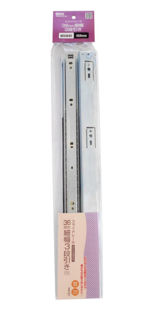 和気産業(Waki Sangyo) スライドレール 2本入(ペア) 36mm細幅 3段引き 450mm WS3645