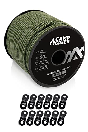 CAMP GREEB キャンプグリーブ 反射材入りパラコード 3mm/4mm/5mm ガイロープ 30m/50m巻 耐荷重240kg/350kg