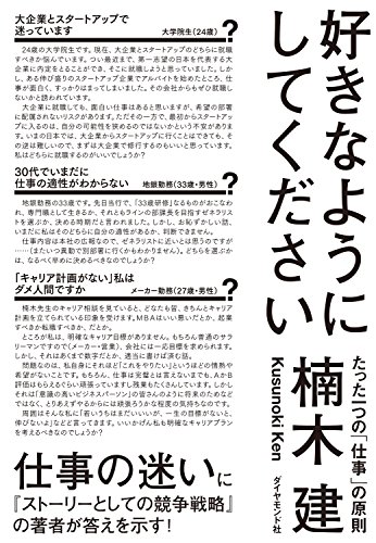 ◆◇◆NHK「おはよう日本」で紹介! ◆◇◆ 若手社員が仕事を見直すきっかけをつかむための本として、本書が取り上げられました(2019年3月5日)。 仕事の迷いに『ストーリーとしての競争戦略』の著者が答えを示す! 「大企業とスタートアップで迷っています」 「30代でいまだに仕事の適性がわかりません」 「キャリア計画がない私はダメ人間ですか」―― 20代~40代から寄せられた仕事の迷いや悩みに対して、時に厳しく、ユーモアに溢れた視点で楠木建氏がアドバイスをおくる。 ・人生はトレードオフ。その本質は「何をやらないか」を決めること。 ・環境の選択は無意味。「最適な環境」は存在しない。 ・趣味と仕事は違う。自分以外の誰かのためにやるのが仕事。……など 仕事に対する“構えについて考えさせられる骨太の1冊! ――――――― 時の流れに身をまかせ、馬齢を重ねているうちに、僕はすでにキャリアの第三コーナーを回ってしまいました。 自分の仕事生活を振り返って、つくづく感じます。ほとんどのことが思い通りになりませんでした。 これからも間違いなくそうだと思います。どうせ思い通りにならないのなら、好き