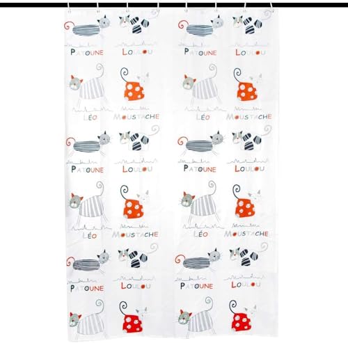 シャワーカーテン バスカーテン 防水防カビ加工 風呂 おしゃれ 目隠し 間仕切り 保温 取り付け簡単 (ネコ柄 横120cm×縦180cm)