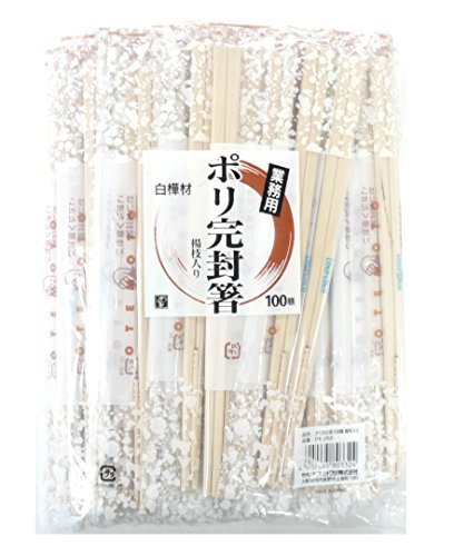 やなぎプロダクツ 業務用ポリ完封箸 楊枝入り 100膳 サイズ:0.3×1.5×20cm