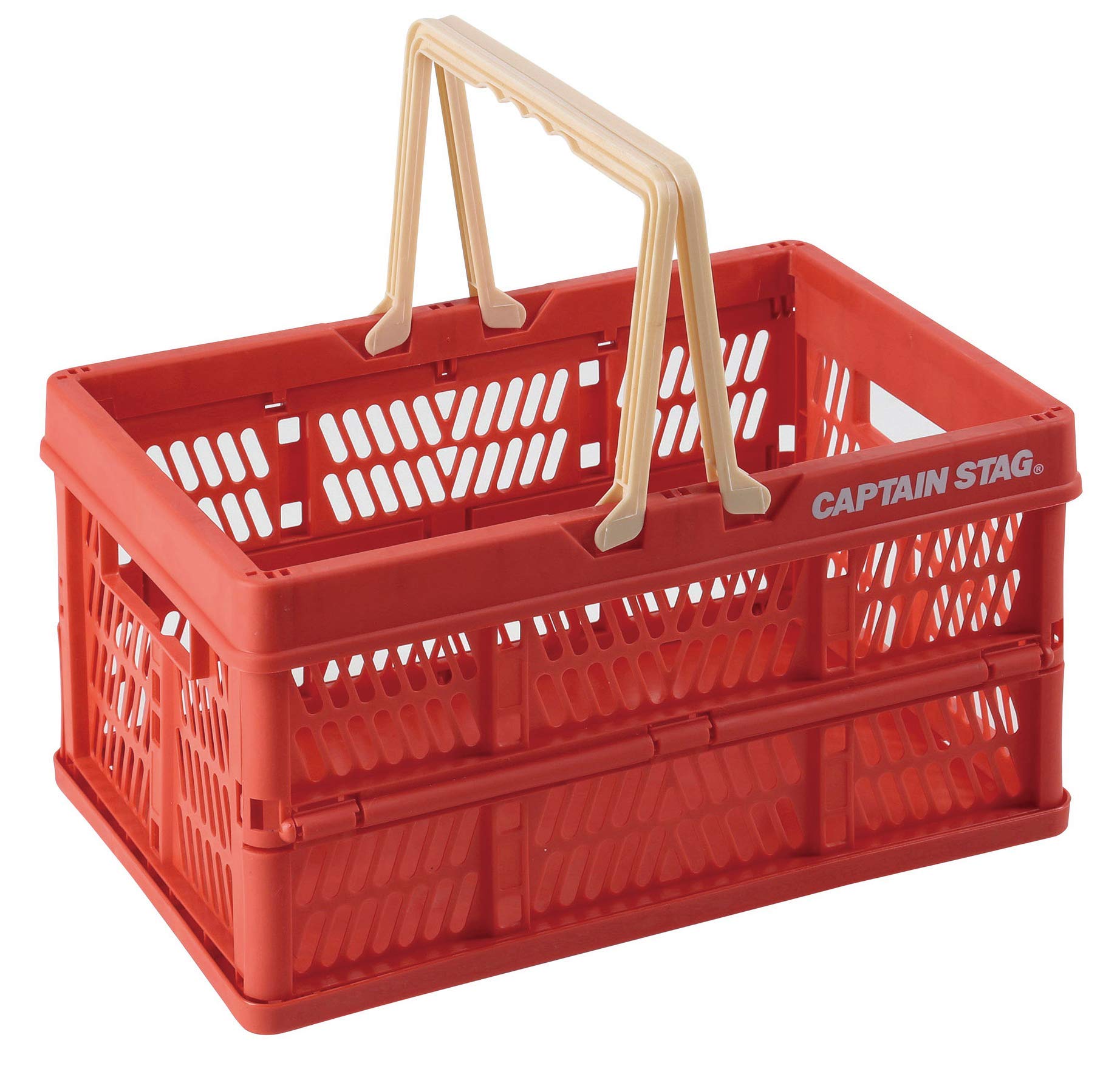 キャプテンスタッグ(CAPTAIN STAG) 折りたたみ コンテナ カゴ フォールディング ハンディ コンテナ 取っ手付き Sサイズ レッド