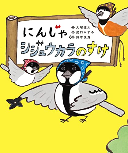 ことりにんじゃ ひみつの言葉はシジュウカラ語? 仲間たちと協力して大きな敵に立ち向かう、ことりにんじゃたちのおはなし。 「ヂヂヂヂ」「ヒヒヒ ヒヒヒ」など、小鳥たちの実際の鳴き声(シジュウカラ語)」が、 ことりにんじゃのひみつの言葉としておはなしに登場します。 出口かずみさんと大塚健太さんによる、ユーモアたっぷり楽しい絵本。 小鳥博士・鈴木俊貴さんが監修巻末にシジュウカラ語の解説ページつき。 メジロじょうに つかえる ことりの にんじゃ シジュウカラのすけは きょうも しゅぎょうに はげみます。 あるひ メジロじょうの おとのさまが せかいで いちばん おいしい きのみを とってくるように いいました。 シジュウカラのすけは なかまたちと おとのさまの ねがいを かなえることが できるでしょうか。